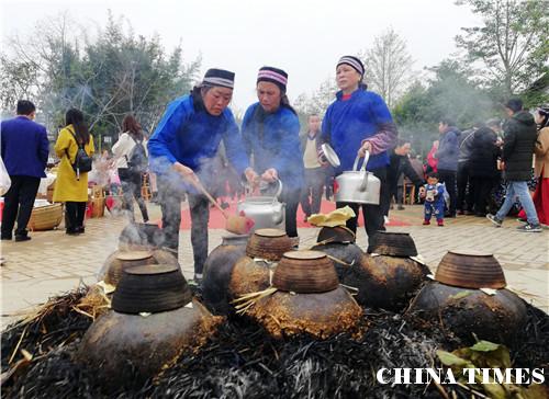 龙南县南武当酒文化广场里展示客家煨酒技艺 (摄影:廖翠霞)