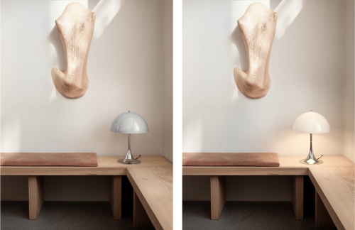 本季,Louis Poulsen推出采用经典灰白色饰面的全新Panthella 320,Panthella MINI和Panthella Portable台灯。该系列台灯适用于任何室内装修以及餐厅、会议室、酒店和其他场所,能够带来高品质的艺术照明效果。开关之间的灯色变换,平添无穷魅力。