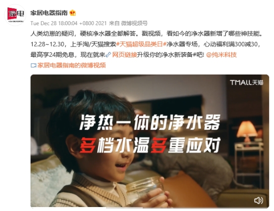 天猫联合9大品牌发起#升级你的净水新装备#活动,小米、九阳、美的、碧然德、碧云泉、沁园、易开得、安吉尔、佳尼特9大品牌,携手迎来了一次“净水器行业大升级”,别总抱怨生活忙碌,健康的生活才是人生真谛。这一次,天猫净水器品类日活动,把最“黑科技”的饮水享受带到你面前了,体验一把“净水新生活”吧,让家里的生命之源更安全、健康、有品质。