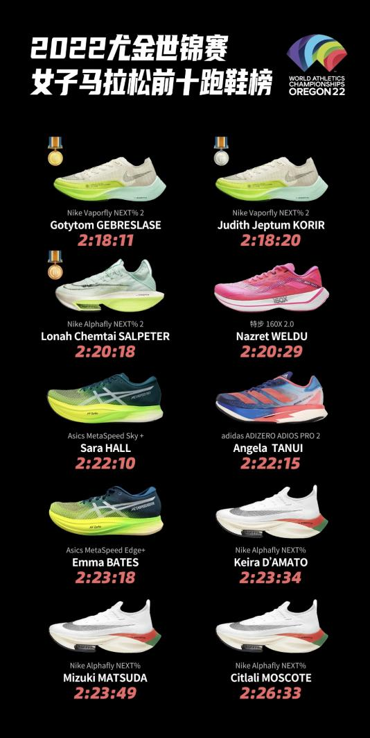 图注:2022尤金世锦赛女子马拉松前十跑鞋榜