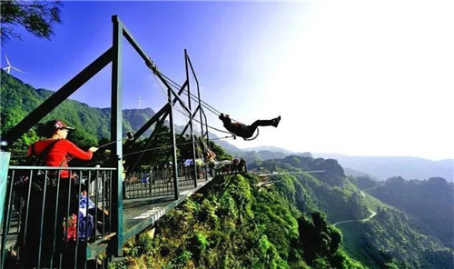 南武当山景区越来越受到广大游客的喜爱,为增强游客在景区的体验度与游玩乐趣,根据南武当山独特地形引入悬崖大秋千、高空滑索、魔毯等新体验项目,增加游客体验度。
