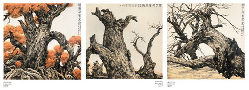 王林森画作《活着千年不死》、《死了千年不倒》、《倒了千年不朽》