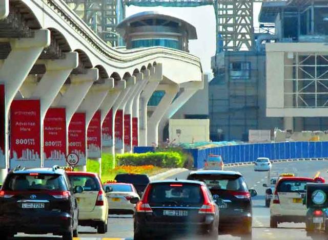 轻轨与公路并驾齐驱(摄影:冯赣勇)