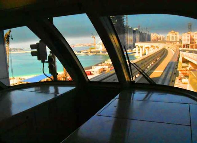 说话间,我们的车子抵达了迪拜市区中的首个景点。记者一行,在领队邱凌利与地接导游陈琪的引领下,首先来到迪拜轻轨旅游车站,乘无人驾驶旅游观光列车前往棕榈岛。登上时速并不很快的观光列车向前望去,只见两条长长的铁轨并行地伸向前方,两旁是海畔的楼群。以及透过楼群看到的蔚蓝色的大海景色。