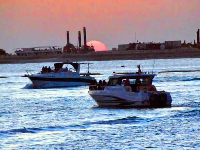 游艇经过1小时左右的航程抵达帆船酒店,此时已近黄昏时分,阳光照耀在酒店,将帆船酒店披上了一层金碧辉煌的外衣,使得夕阳下帆船酒店的景象更为壮观。大家从迪拜泛舟波斯湾乘坐的游艇,下午起航出发时还艳阳高照,但返航时已经是灯火阑珊时。