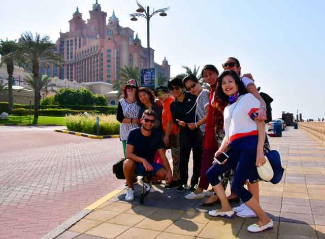 在车上,导游陈琪与邱凌利相互补充地将迪拜的情况向团友们娓娓道来:位于阿拉伯半岛中部、阿拉伯湾南岸,作为海湾地区中心的迪拜,是阿联酋人口最多的城市,也是一座现代化的国际大都市及中东最富裕的城市。同时,还是中东地区的经济和金融中心,被称为中东北非地区的“贸易之都”。