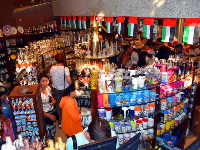 走出地下陈列室便是纪念品商店,丰富多彩的纪念品琳琅满目,游客们可以在此挑挑看看。绝对有令人选购的一款值得纪念的小礼品。记者在此用3美元买了一个集合了迪拜主要景观的冰箱贴作为留念。
