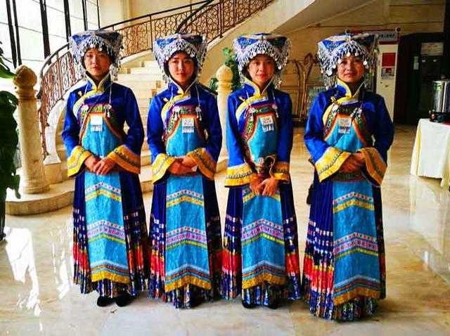 从兴义万峰林机场前往兴义市区的路上,只见途中道路两侧色彩夺目的木棉花充满人们的眼帘,被当地人称为三角梅的这种紫色花卉,让我们从北方过来的人,一下就感觉到了南国的味道......这种道路两侧的景观花,在贵州、广西、云南到处可见,那几年总在这些地方跑,所以一看到此花就感到很亲切。到了下榻的富康国际酒店,早已迎候在此,身着艳丽民族服装的苗族姑娘,给每一位到此的客人均献上一个红色的香荷包,让人感到了一种宾至如归的温暖。作为黔西南苗族布依族自治州州府所在地的兴义,给初到此地的人们感觉非常不错。