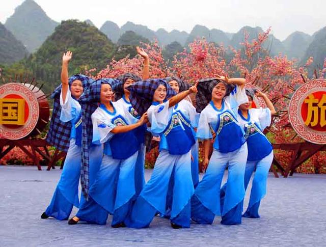 小火车驱车8公里之遥,来到万峰林广场,这里正在进行一场精彩的布依族与苗族文艺演出,充满浓郁民族风情的歌舞升平,受到了游客们的热烈欢迎,掌声与喝彩声,此起彼伏地回荡在广场上空。