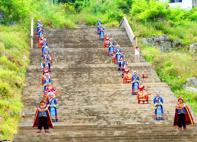 从兴义万峰湖吉隆堡码头出发,经过一个多小时的湖上观光游,最后经过小三峡抵达红椿码头登岸,在此,感受了一次布依族、苗族同胞隆重的欢迎礼仪。只见身着五颜六色民族服装的姑娘与小伙子们,分列在码头的两侧,站在由高到低的台阶上,吹着长号,歌舞升平,敲锣打鼓地欢迎远道而来的客人,令与会者兴奋不已,大家纷纷拿出手机、相机拍个不停,留下了一幅幅难忘的美好瞬间。