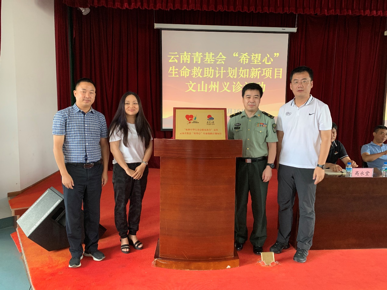 如新公益基金会秘书长张洁、中国人民解放军南部战区总医院心外科副主任马涛、云南青基会理事长倪志伟、文山团州委书记郭敏共同为活动揭牌