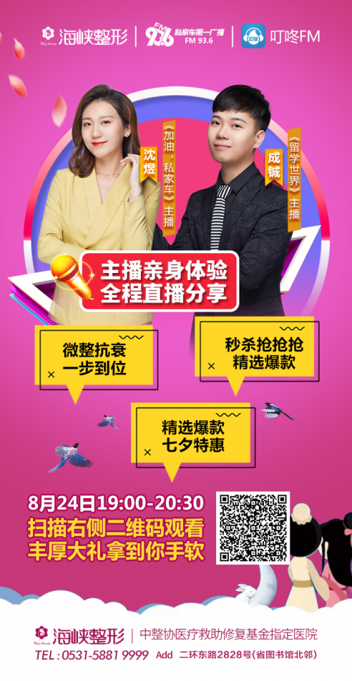 8月24日晚19:00 济南海峡整形医院直播间与您不见不散!
