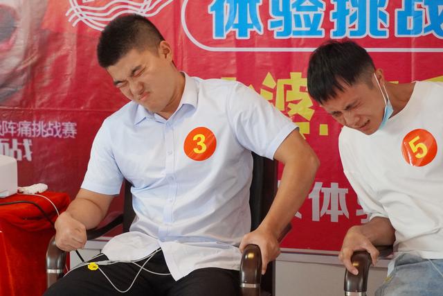分娩体验环节中,分娩级别分为1-12级疼痛,12级疼痛为孕妈分娩时阵痛。工作人员将分娩体验仪的腰带和探测仪放在准爸爸们的腹部。调至2级疼痛时,1号准爸爸就已经承受不住了,现场对爱人进行了深情的表白。其它体验者随着疼痛的升级也出现了各种各样的“表情包”。
