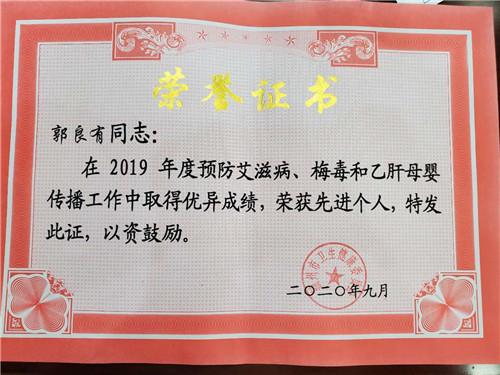 会昌县妇幼保健院妇幼信息科郭良有同志荣获“预防艾滋病、梅毒、乙肝母婴传播工作先进个人”称号。