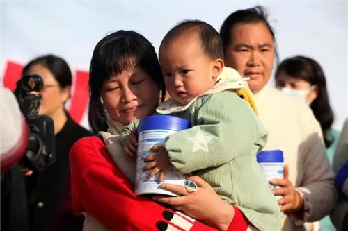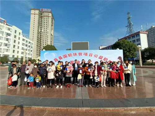 活动现场为24户贫困家庭代表捐赠奶粉,156户一般家庭代表发放公益资助奶粉,共发放奶粉333罐。