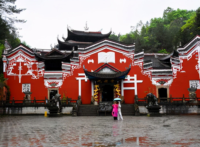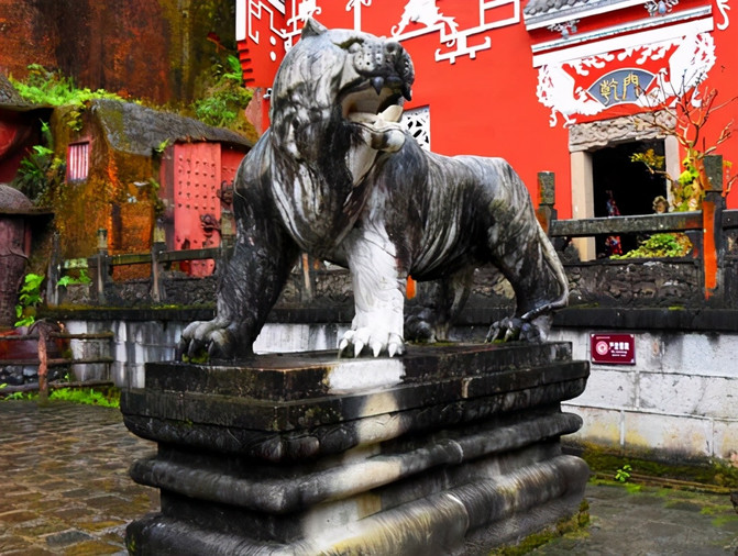 离开廪君庙再往前来到一座广场,正面就是九进堂。两侧有着一些雕像。其中的白虎雕像中的白虎是土家族极为崇拜的廪君魂灵的化身。因而白虎也便是土家族的图腾宗拜和土家族的族徽和标志。所以有称土家族为虎氏民族的。