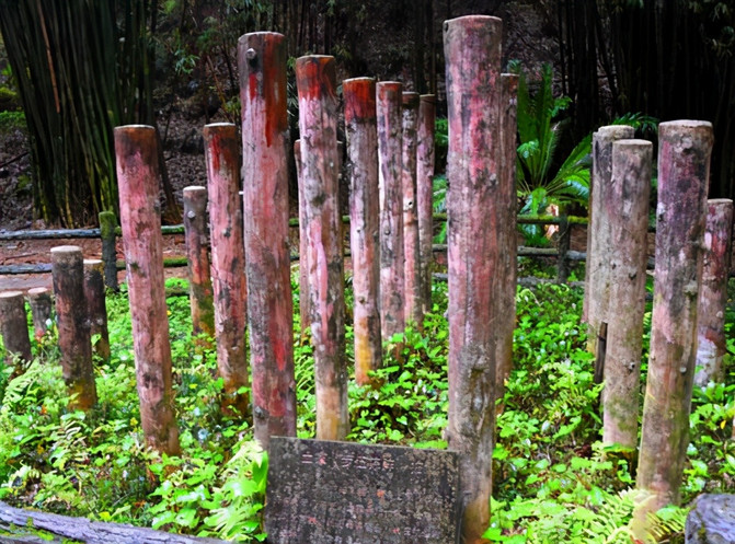 在广场附近还有从土司校场,也称射圃,是土司兵丁操防习武的地方,除置有一般刀枪剑戟外,还设有赤脚攀登的苗族刀梯、箭垛(靶)、桑木弓、爬竿和练习膂力的石磨、石锁等。不远处还看到一个“土家《步伍掠阵》桩”颇像武林高手所竞技的“梅花桩”。