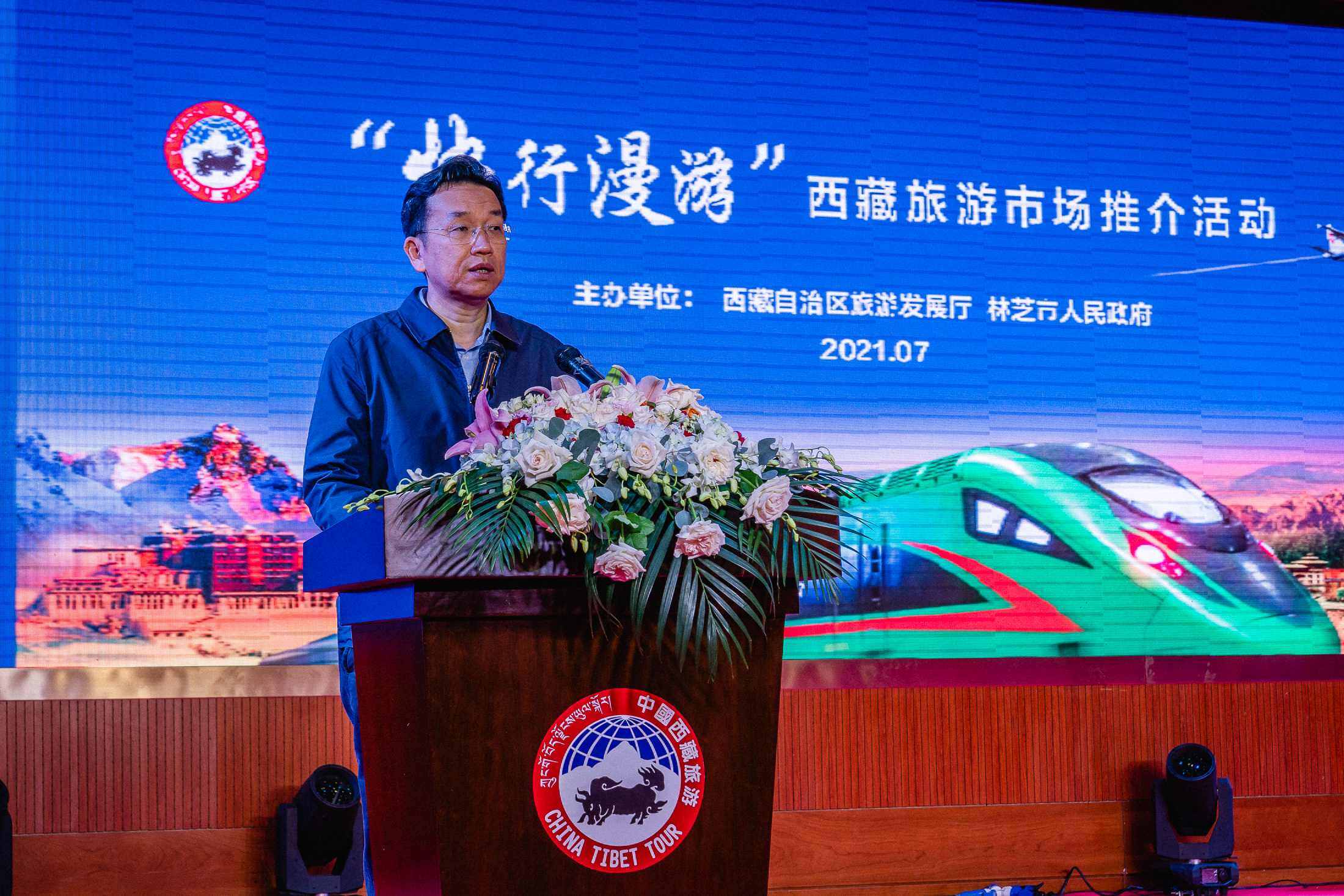 7月5日,由西藏自治区旅游发展厅、林芝市人民政府主办的“快行漫游”西藏旅游市场推介活动在华能集团林芝分公司多功能报告厅举行。西藏自治区旅游发展厅副厅长姬越,林芝市委副书记、常务副市长、广东省第九批援藏工作队领队刘光明出席活动并致辞。拉萨、林芝、山南、日喀则四地市旅游发展局领导,华能集团林芝分公司领导,中国铁路青藏集团有限公司林芝站代表,北京及区内旅行商代表,知名旅行达人,中央驻藏、京津冀地区、西藏本地媒体等近百人出席此次推介活动。