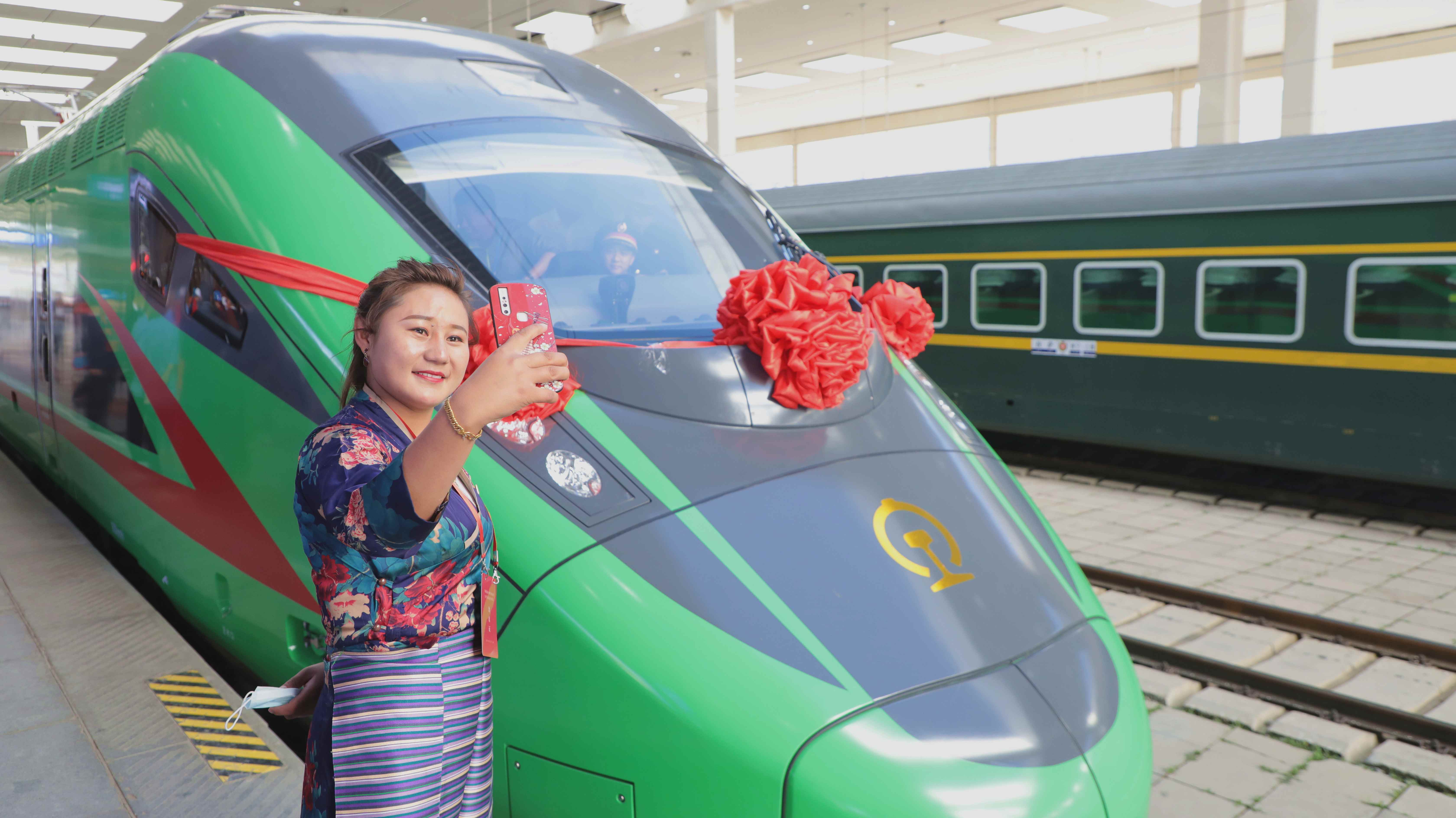 同时,西藏高铁旅游产品推介人就“复兴号”沿线旅游产品进行介绍。乘着“复兴号”,游客们可以在拉萨领略布达拉宫的雄伟、去珠峰之乡日喀则体会世界之巅的魅力、到藏源山南感受藏文化的传承、到林芝穿梭在“西藏小江南”的秀美山水。而高效快速的交通方式,给游客们预留了充足的时间游览景区,让人们感受到更丰富、更充实的旅行体验。
