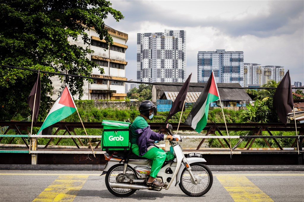 馬來西亞疫情高燒不退,13日新增1萬1079名COVID-19確診病例,再度刷新馬國單日確診人數紀錄。圖為吉隆坡街上黑旗飄揚,以示抗議馬來西亞政府未能應對疫情。(安納杜魯新聞社)