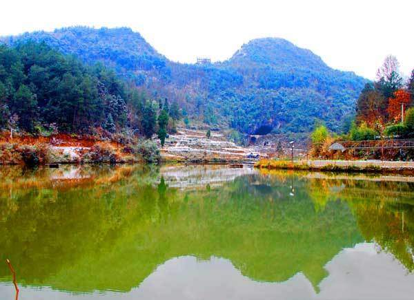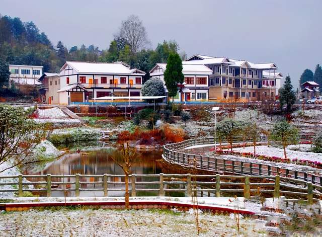 走进凤冈县进化镇临江村泡桐组,映入人们眼帘的是白雪覆盖下的一幢幢雕花窗、白粉墙、小青瓦,挂着红灯笼的黔北民居;一排排或青砖、或黄砖打造的围墙走廊;一棵棵盛开的桂花洒满了金黄的金子,香气四溢,沁人心脾。农家花园里盛开的一串红、玫瑰、四季海棠芳香四溢;农家房屋绘上了勤劳致富、文明和谐,各种花、草的精美图案;一户户农家乐里传来游客欢乐的笑声。这里的农村一改往日的旧貌,“四在农家•美丽乡村”促进了农村乡风文明的彻底改变。