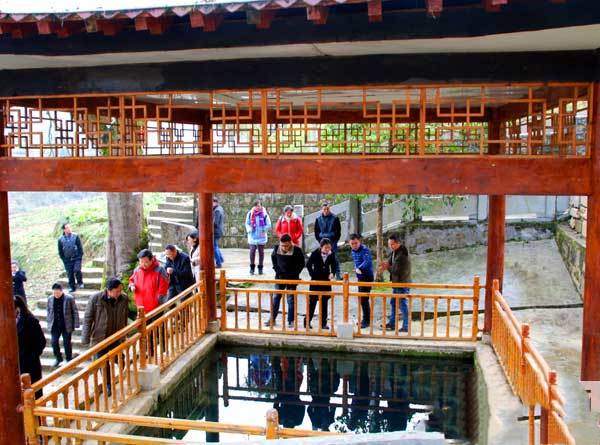 专家组一行首先抵达巡检村。只见位于街头的是一座灰色古朴的巡检司牌坊。据当地的史书记载,南宋著名哲学家陆九渊九世孙陆公阅洪武7年(公元1376年)受皇帝朱元璋赐封巡检司,受陆九渊心学思想的熏陶,主导“心即是理”的观点,认为仁义礼智信等道德规范是人的天性所固有的。致学目的于穷此理,尽此心,认为人都是可以教化好的,与蜂岩的孝文化一脉相承。蜂岩是贵州境内唯一一个的官职(巡检司)命名的地方,从洪武七年(公元1376年)至雍正四年(公元1726年)至土归流,土司管辖350年,留下很多土司元素和文化符号,现保有土司(陆公阅)墓和故居、土司衙门旧址等。