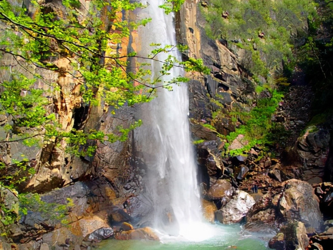 途中经过的白龙瀑布也是一道美景。好似一条白龙从天而降的白龙瀑被称为“白龙撞”。它一波三折,飞流直下,如白龙出谷。瀑布落差达80多米,那气势如霹雳闪电,雷霆万钧,好似山呼海啸,声荡峡谷,响彻云霄。