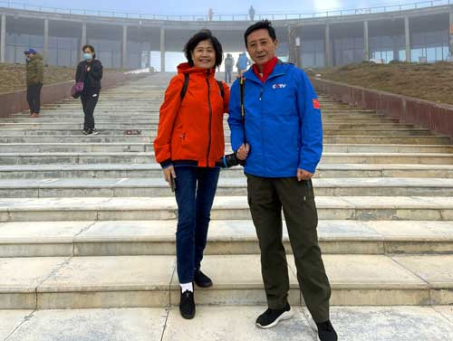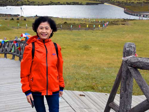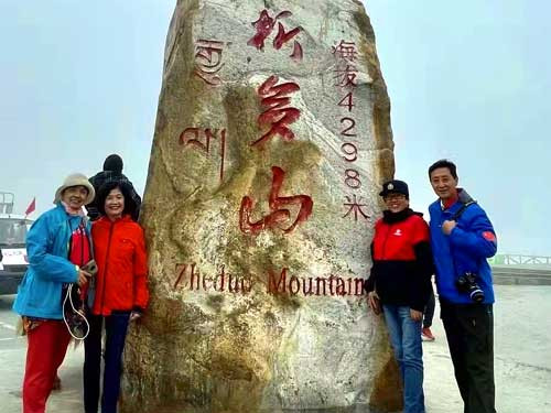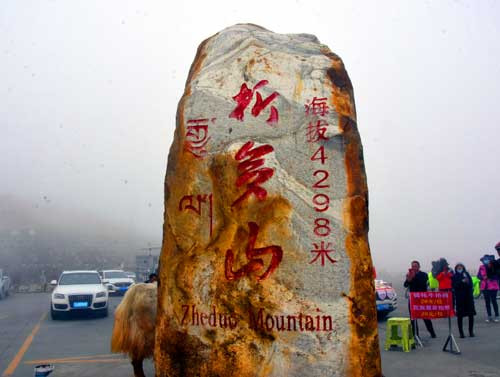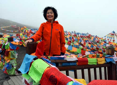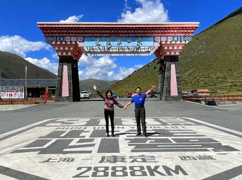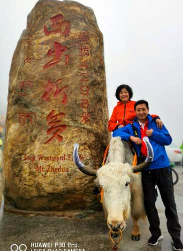 折多山海拔纪念石合影(摄影:钟玲玲)