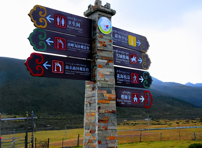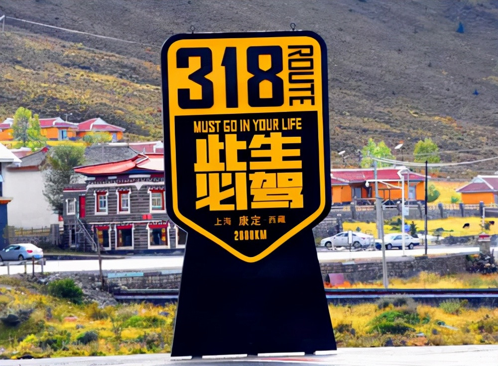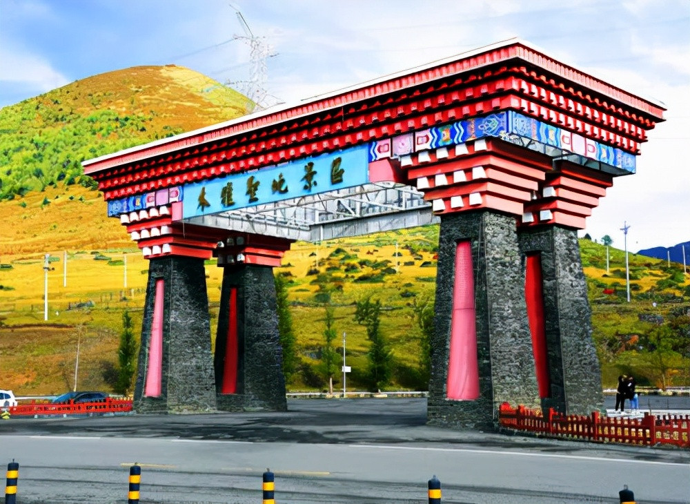木雅圣地景区前的广场紧依318国道的一侧,也是自驾车友的网红打卡点。一座高大的牌楼矗立在路口一侧。正面题为“木雅圣地景区”,背面为“进藏第一景”的几个大字十分醒目。进入牌楼就是停车广场,正对牌楼停车场的地面上喷涂着“318国道此生必驾”以及“上海--康定--西藏2888KM”的大字。