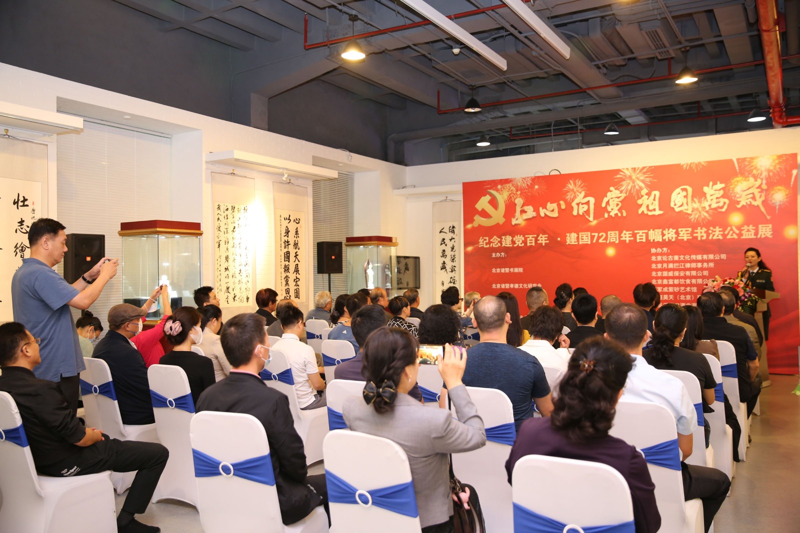本报讯(记者 孙彬)2021年9月29日上午,由北京诸暨书画院、北京诸暨孝德文化研究会、首都书画院等单位共同主办的红心向党、祖国万岁庆祝建党百年、建国72周年百幅将军书法公益大展在北京文化创意产业展示中心隆重开幕。