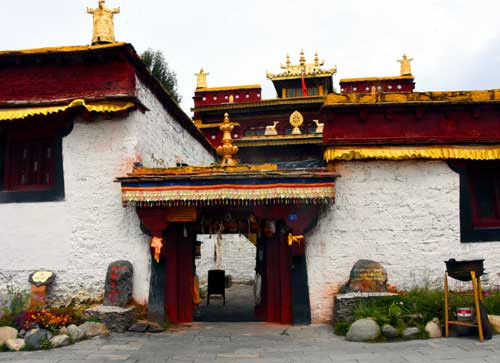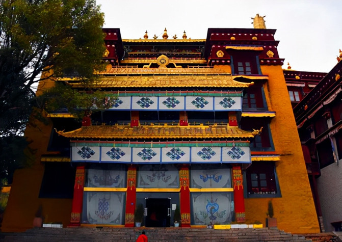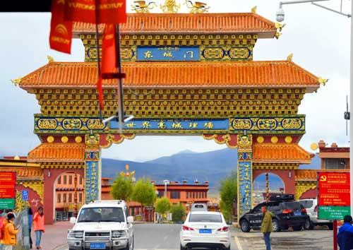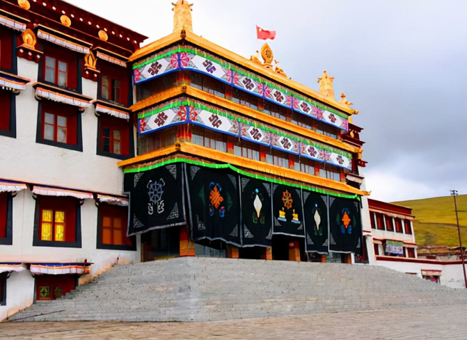 结束了仁康古屋的参观,记者一行乘景区观光车,顺着千户藏寨中的村落街巷来到理塘第二个著名的景点:勒通古镇上藏区最大的黄教寺庙长青春科尔寺,继续瞻仰。