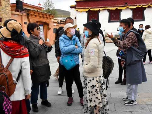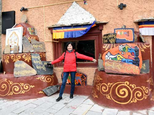 酥油花是雕塑艺术的一种特殊形式。藏语觉安钦巴,意为“十五供品”,亦称“酥油花”。它是以酥油为原料,以人物、花卉、飞禽、走兽、树木等人和事物为主题的一种高超的手工油塑艺术,具有悠久的历史。在理塘的两个重要景点,杨良磊其深入浅出,绘声绘色的生动全程讲解,给记者一行留下了深刻的印象。