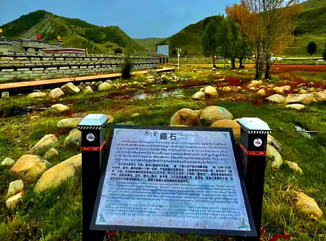 第七世达赖喇嘛出生之后,流出狮乳柱头的基石上自然呈现出许多藏文字母,基石的侧面也出现一些密宗法器(金刚杵、宝瓶)的图形,依然清晰可辨。清雍正八年(公元1730年)一月二十一日,达赖喇嘛奉旨离开理塘,由四川重庆镇总兵官任国荣带兵二千护送。二月三日,七世达赖喇嘛住进道孚惠远寺。