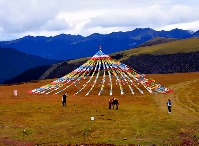 当日09:15,记者一行首先抵达俯瞰天路十八弯景点,海拔近4100米的剪子弯山观景台。剪子弯山亦称剪子弯梁子、尖子弯山,属沙鲁里山,雄峙于四川省雅江县香格宗乡西侧,呈西北-东南走向,为雅砻江与吉珠沟的分水岭,因翻越其驿道傍山成剪刀形弯曲而上故名,藏名“博浪贡”,意为全天有雾的山顶。它的藏语名字叫“惹玛那扎”,意为羊子山口。山口海拔4659米,是318国道经康巴地区的最高山口之一。千山万壑尽收眼底的意境,领略一番茶马古道的古风遗韵。