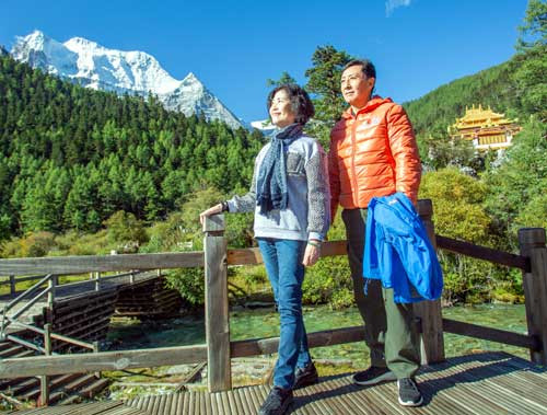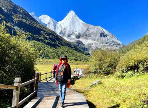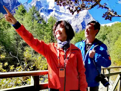 在扎灌崩,钟玲玲请携程旅游西南部的专职摄影师分别给大家留下了一张以冲古寺为背景的纪念照。之后,大家分头行动,按照自己所能付出的体能条件,开始各自的稻城亚丁探秘之旅。