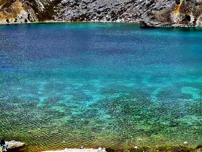 五色海,顾名思义,因产生五种不同的颜色得名。其真名为“单增措”,单增措又名舍利海,意为“吉祥海”。走近五色海,湖面一片迷离,让人恍如身处梦境。湖水清透,湖底像用墨笔描就的格子,充填着浓浓淡淡的蓝色颜料。如果是天清气朗,湖底的植物和湖水会在阳光的照射下呈现出不同的光芒,渐变过渡却又有着微妙的变化,如一幅静止而又壮观的重彩油画;如果是阴天也不要气馁,镶嵌在山间的五色海,会用最幽深的蓝色平复人的心境,让人体会生命如流水一般千变万化。