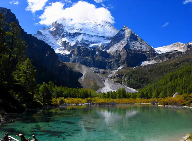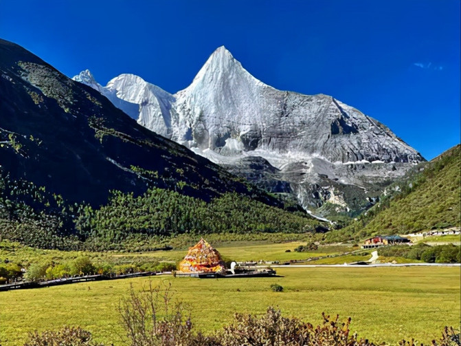 稻城亚丁风景区位于四川省甘孜藏族自治州稻城县香格里拉镇境内,国家5A级旅游景区,国家级自然保护区,是中国香格里拉生态旅游区的核心,集雪山、冰川、海子、草甸、森林等高原风光于一身,被称为“香格里拉之魂”“最后的香巴拉”,因景区内有小村亚丁而得名。