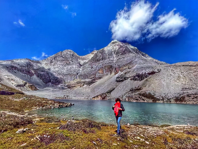 虽然记者没有能力走从这里前往牛奶海的稻城亚丁的长线,但是与记者曾一起前往南美洲与中美洲并此次同行的团友马秀玉,她可是一位精力充沛,耐力十足的旅友。我们在扎灌崩分手后,她毅然选择了前往五色海与牛奶海的长线探险。并拍下了精彩的图片供大家共享。