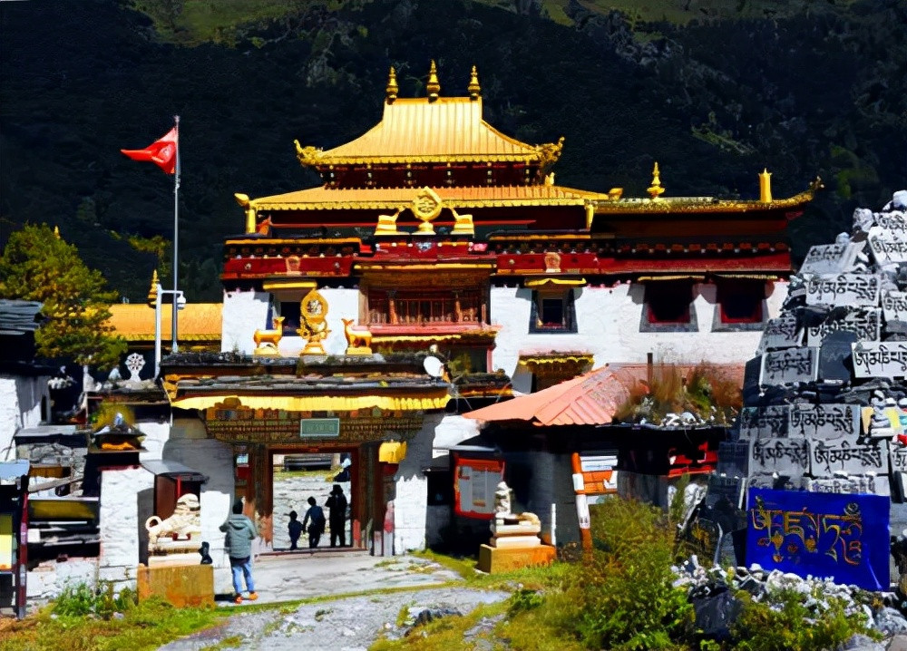位于仙乃日雪峰脚下的贡嘎冲古寺,意为填湖造寺,海拔3880米,始建于元朝,是通往“三怙主神山”的必经之处,也是当地藏族人民转山仪式的出发点。传说高僧却杰贡觉加错为供奉神山在此修建寺庙,谁知却触怒了神灵导致灾难降临,于是他日夜乞求神灵免除百姓之苦,降罪自身,终于感动神灵换得百姓平安,他却身患麻疯病就此圆寂。寺院僧人每日薰香念经,希望向后世之人传扬和纪念却杰贡觉加错的功德善举。