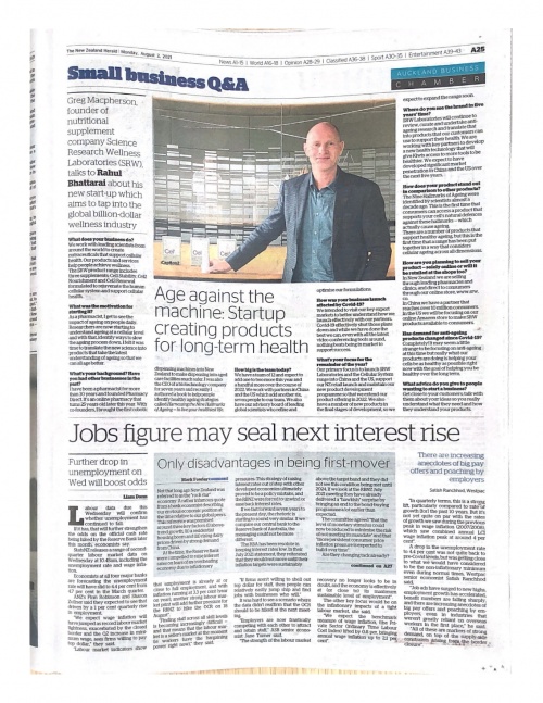 得益于《Harnessing the Nine Hallmarks of Aging》(《科学抗衰,细胞的九维修复密码》)前沿细胞研究理论及SRW产品的精准功效,Greg Macpherson开始被越来越多主流媒体所关注。其中,新西兰权威媒体《新西兰先驱报》率先对Greg本人做了深度采访,在新西兰拥有高声望的商业媒体NZ Business也称赞了Greg和他的SRW品牌为人们带来了一种新潮且科学的健康生活管理方案。