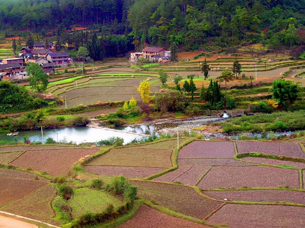 在黄果树瀑布上游,有座扁担山,这里的景色好似一幅美丽的田园风光画卷。在扁担山乡居住的布依族乡民在节日中表演“刷把舞”是必不可少的一个内容。《刷把舞》也称《丰收舞》,刷把舞源于布依族人民在丰收时节,为了不浪费一粒粮食,确保颗粒归仓,他们用刷把把烧箕缝隙间的粮食刷出来倒入盛粮食的簸箕里。刷把、烧箕和簸箕是布依族人民常用的三件生活劳动用品。