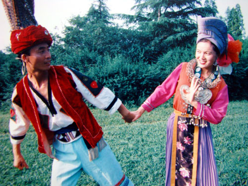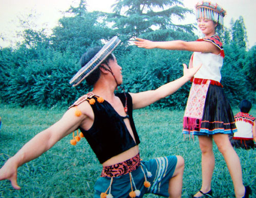 6月16日下午,结束了乌当卡堡苗寨的拍摄来到美丽的花溪公园,在绿茵茵的草坪上,苗家的男女青年跳起了妙趣横生的《接亲舞》,他们用热情奔放的舞蹈语汇,艺术化地表现了苗家人的这一传统风情。