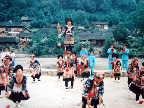为此,我们《中国民族体育》剧组在拍摄完《云南苗寨的民族体育》后,于1999年6月先后前往贵州清镇市红枫湖、挖力小康民族村寨、贵阳市乌当下坝乡卡堡苗寨和花溪以及镇远等地区,一展苗族同胞们绚丽多姿的传统体育歌舞表演,并用我们的摄像机完美地记录下来。