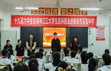 本次宣讲活动以学习贯彻党的十九届六中全会精神为目标,通过创新宣讲模式,将理论融入了话剧、三句半、朗诵等别具一格的宣讲方式,回顾了中国共产党的百年奋斗历程,党和人民群众始终保持血肉联系,增强了宣讲的趣味,调动了同学们的热情,为新余市实验中学同学们带来了一场高质量、高水平的宣讲。