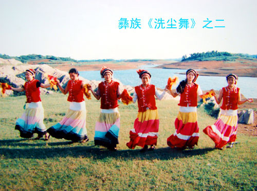 在贵州花溪,彝家姑娘每当有贵客来临时,都要跳起热烈欢快的“洗尘舞”。打是亲,骂是爱,彝族姑娘以这种独特的迎客方式欢迎远方来的客人,为客人扫去路途的尘埃和疲惫,祝福客人事事顺利,平平安安。“洗尘舞”以彝族姑娘们独到的舞蹈语汇表现了她们对彝家来往宾客们的一种发自内心的美好祝福。