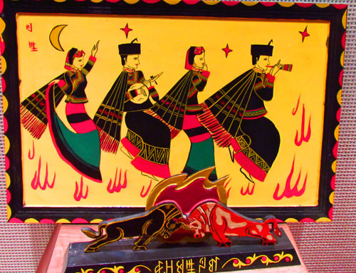 彝族火把节漆画(摄影:冯赣勇)