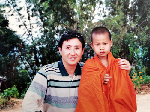 记者与村寨小和尚(摄影:胡晓飞)