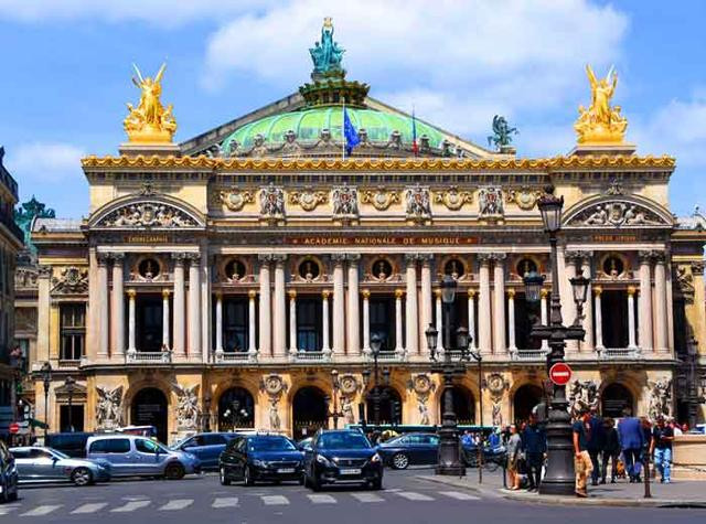 巴黎歌剧院又称为加尼叶歌剧院,是一座拥有2200个座位的歌剧院。巴黎歌剧院是世界上最大的抒情剧场,总面积11237平方米。歌剧院是由查尔斯.加尼叶于1861年设计的,其建筑将古希腊罗马式柱廊、巴洛克等几种建筑形式完美地结合在一起,规模宏大,精美细致,金碧辉煌,被誉为是一座绘画、大理石和金饰交相辉映的剧院,给人以极大的享受。是拿破仑三世典型的建筑之一。