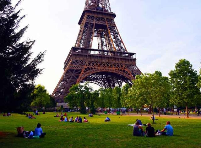 说起巴黎的埃菲尔铁塔,欧洲行团队几乎从进入巴黎的第一天就多次观赏到这个世界著名的建筑奇观,从首顿巴黎塞纳河畔船餐厅的午餐到塞纳河泛舟,直至乘大巴车行驶于巴黎市区见无不见到其鹤立鸡群的雄姿。特别是两次在铁塔附近的中餐厅用午餐,得以在用餐前后的这段时光在铁塔周围的草坪上观赏仰视。