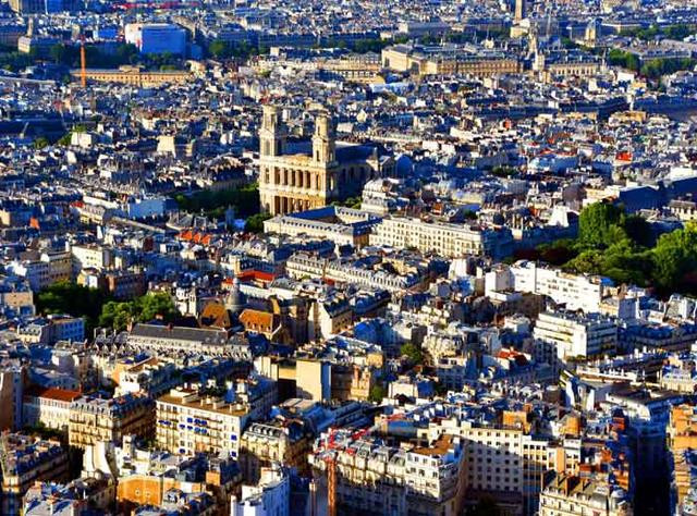 若以香榭大道为分界线,往西看,巴黎的象征--艾菲尔铁塔、荣军院在左岸。更北一些,蒙马特山丘上的圣心堂白色尖顶仿如地标似的耸立,是仅次于埃菲尔铁塔高度的巴黎地标景物。